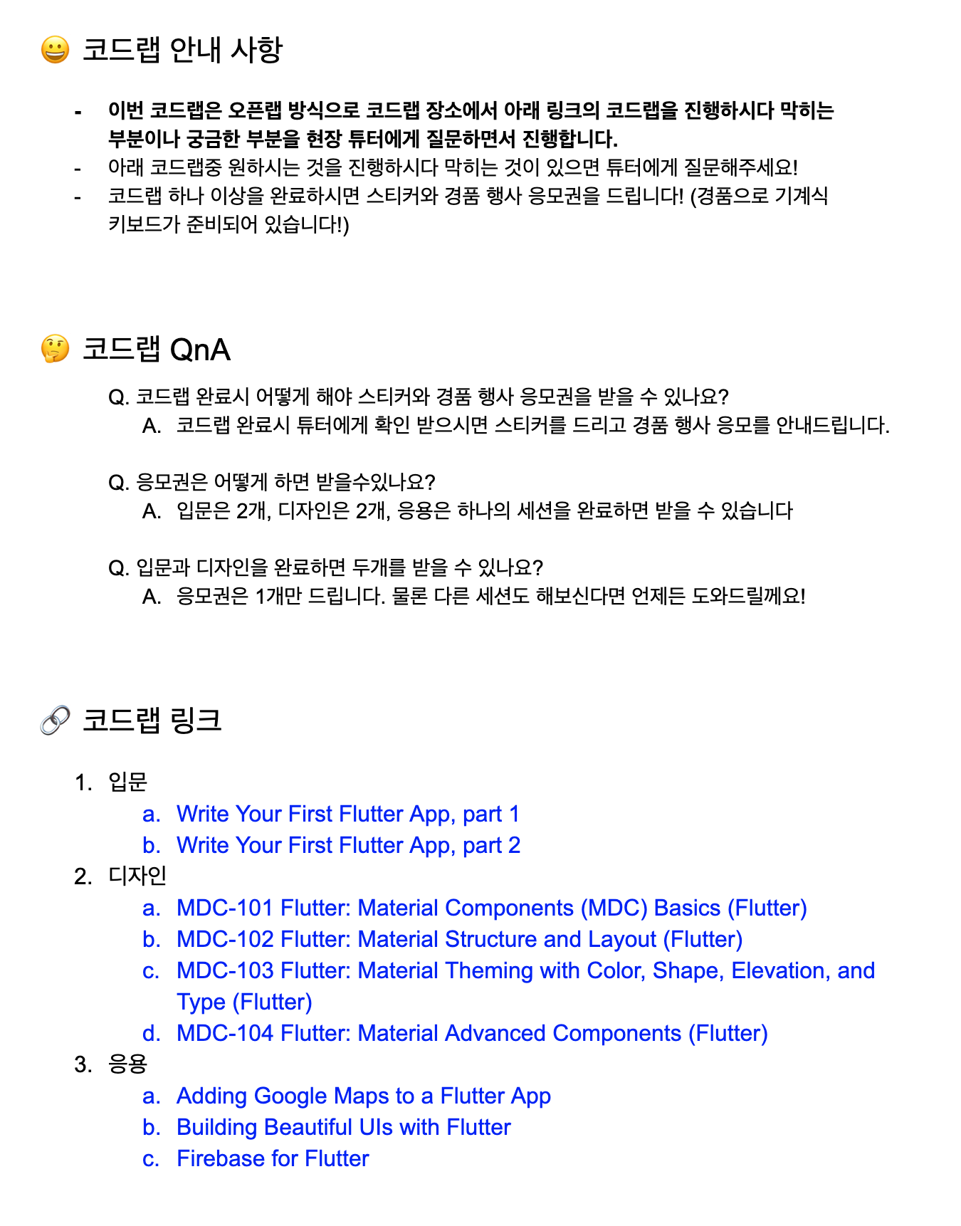 그렇게 되어 저는 이 행사의 Flutter 코드랩 리더를 맡게 되었는데요.